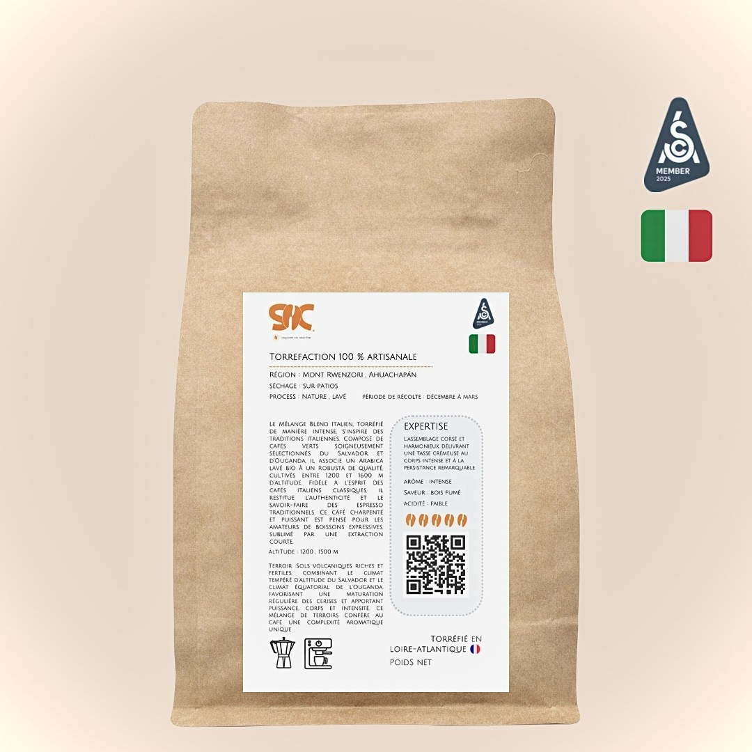 Expressif, offrant une tasse puissante aux notes de chocolat noir amer et d’épices grillées . Ce café provient de plusieurs petites exploitations situées dans l'ouest de l'Ouganda, à NTUNGAMO, également appelées Mont Rwenzori. Ici, le robusta pousse entre 1 200 et 1 500 mètres d'altitude. Le Nganda est une sous-variété de café Robusta. Ce café est couramment cultivé en Ouganda et profite d'un très bon rendement. Le climat Ougandais entre ombrage et précipitations est propice à la culture de cette variété. Idéal pour les méthodes : expresso , italienne